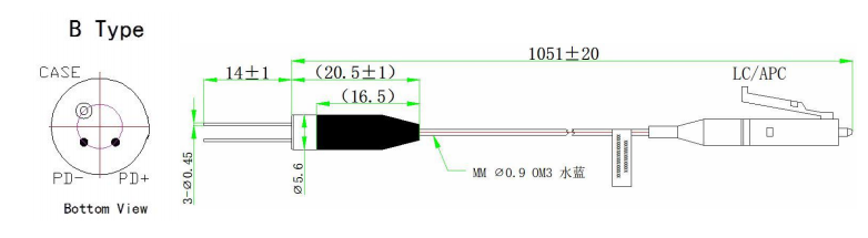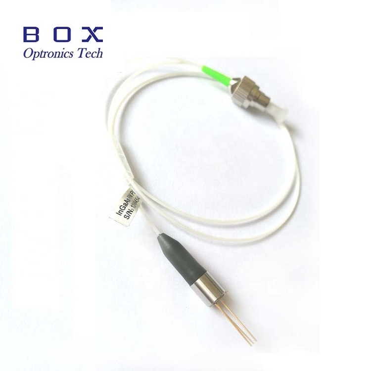 Fotodioda Pigtail InGaAs digabungkan dengan serat multimode, dengan diameter inti 50µm atau 62,5µm yang dapat dipilih, dan rentang panjang gelombang deteksi 900-1700nm.